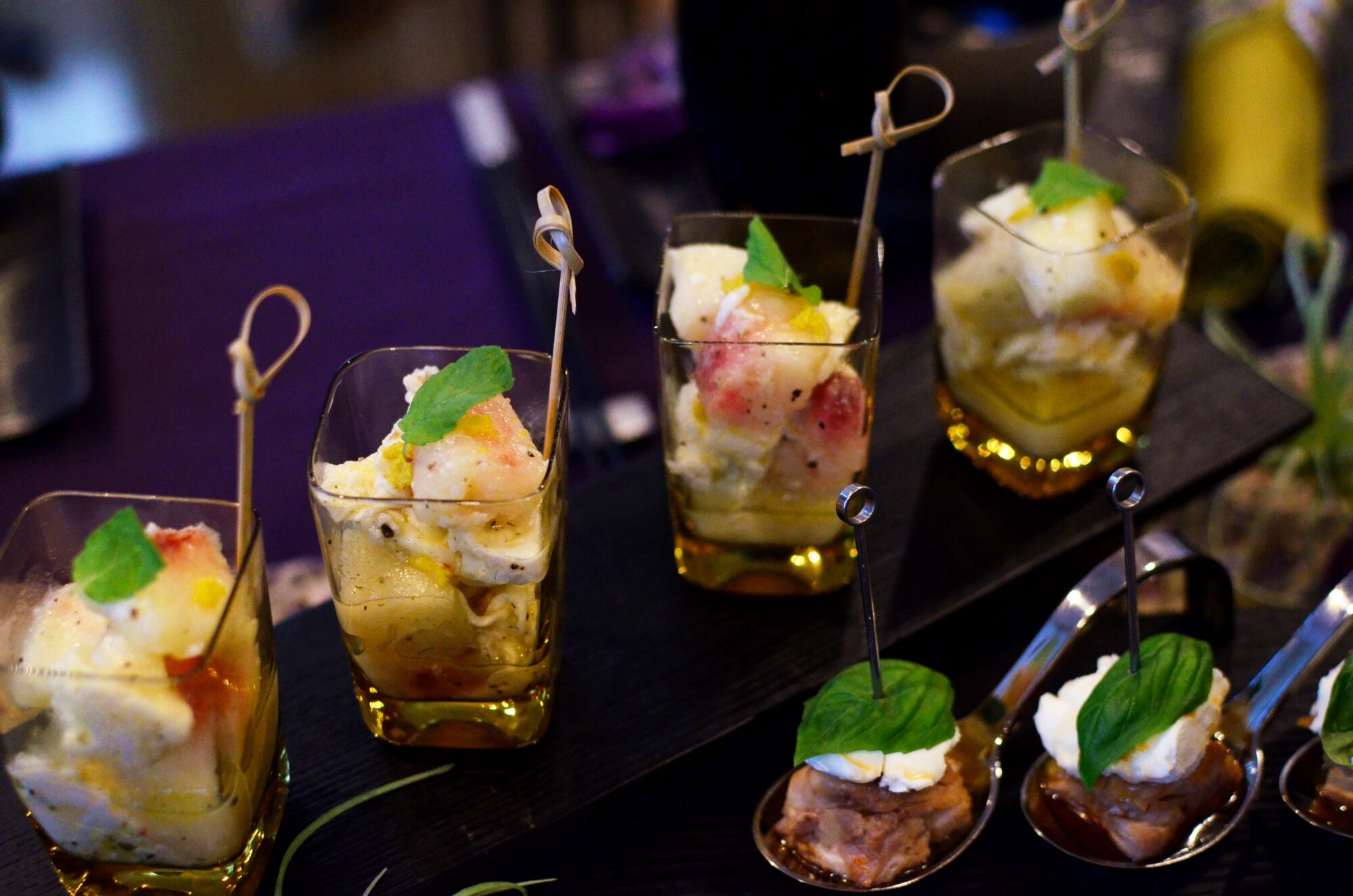 1つ1つをショットグラスや小鉢等に盛り付ければ、
